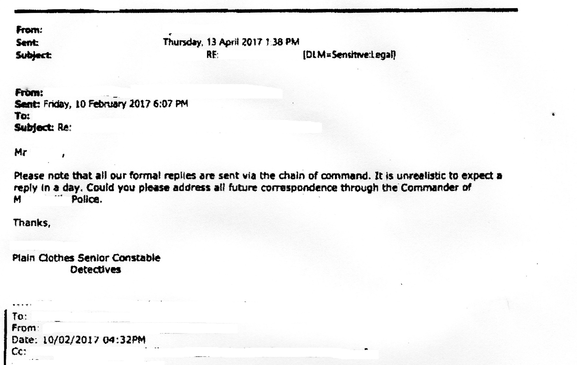 10th February 2017 The police wrote back in an email suggesting that it was unreasonable to expect a response to the correspondence regarding the stolen computer within a day.