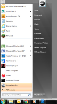 Here you can see Actual Keylogger and my version of Team Viewer, which I had installed after Lea had installed her hidden version. It was my computer to do what I wanted with but even if it hadn’t been I could hardly be accused of being anything but very public in my actions. There’s two types of Spyware in the Start menu. To be honest there was a third spyware programme that you couldn’t see but it’s effectiveness would have been nullified by the two other very obvious programmes.