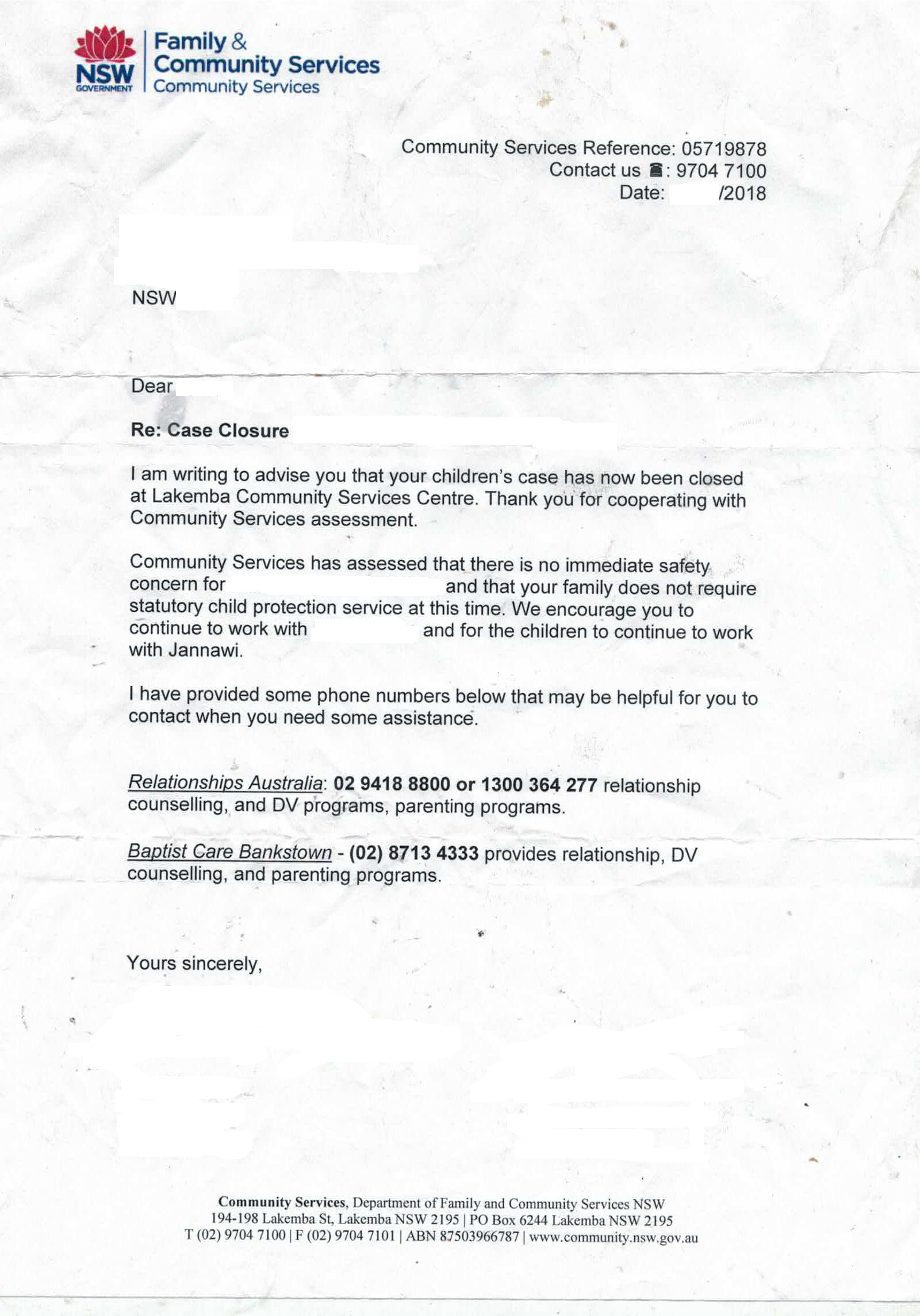 Sensing that I needed to get “on the front foot” I made an appointment with FACS Lakemba on the 27th July, 2017. I met with Mona Scratch (not her real name) and another case worker I shall call CAC. We talked for almost two hours.
